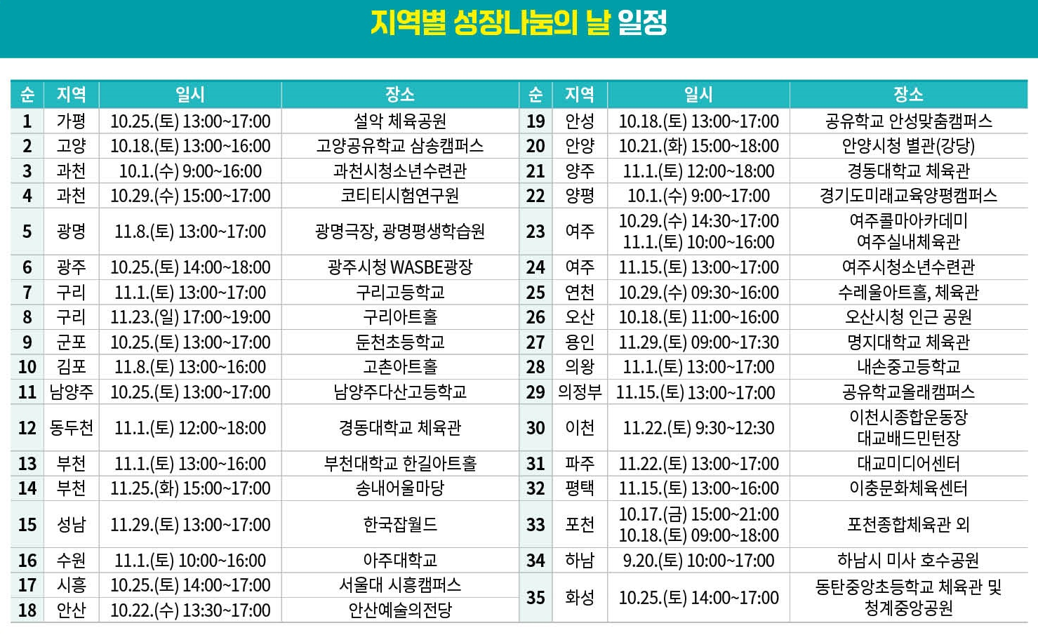 지역별 2025.10.1.(수)부터 2025.11.29.(토)까지 이루어지는 성장나눔의 날에 많이 참여해주세요.