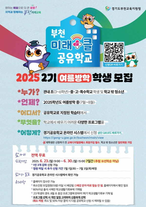 (0626) 부천 미래+클 공유학교 2기 학생 모집, 여름 방학 배움의 장 마련